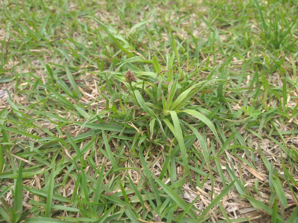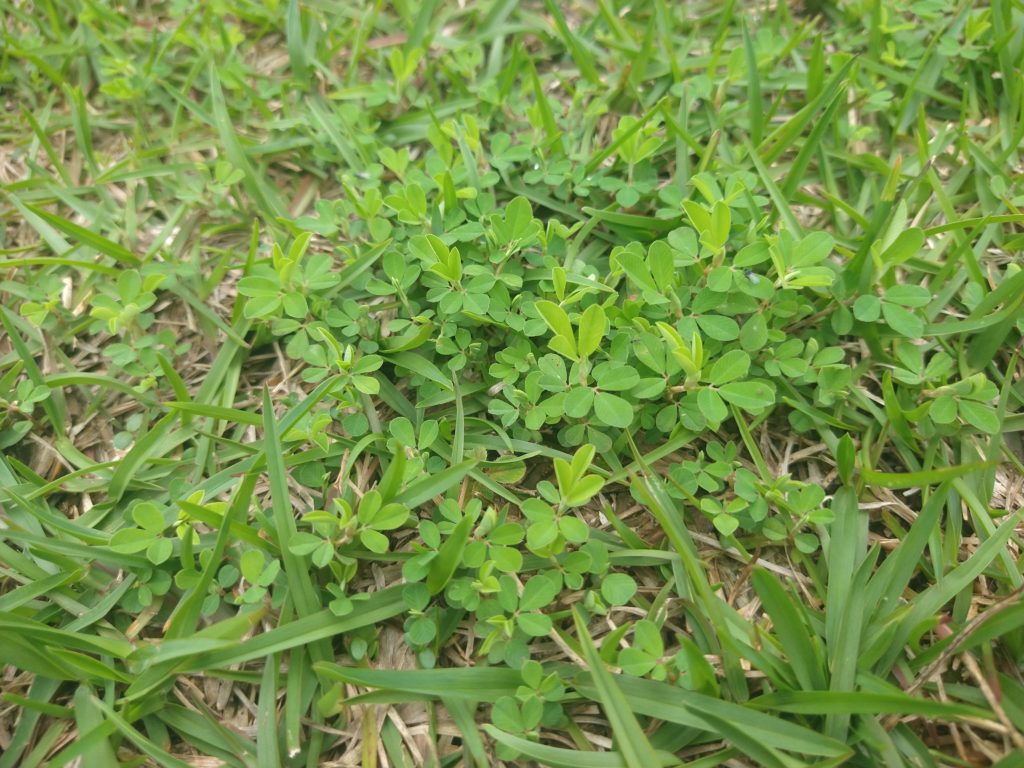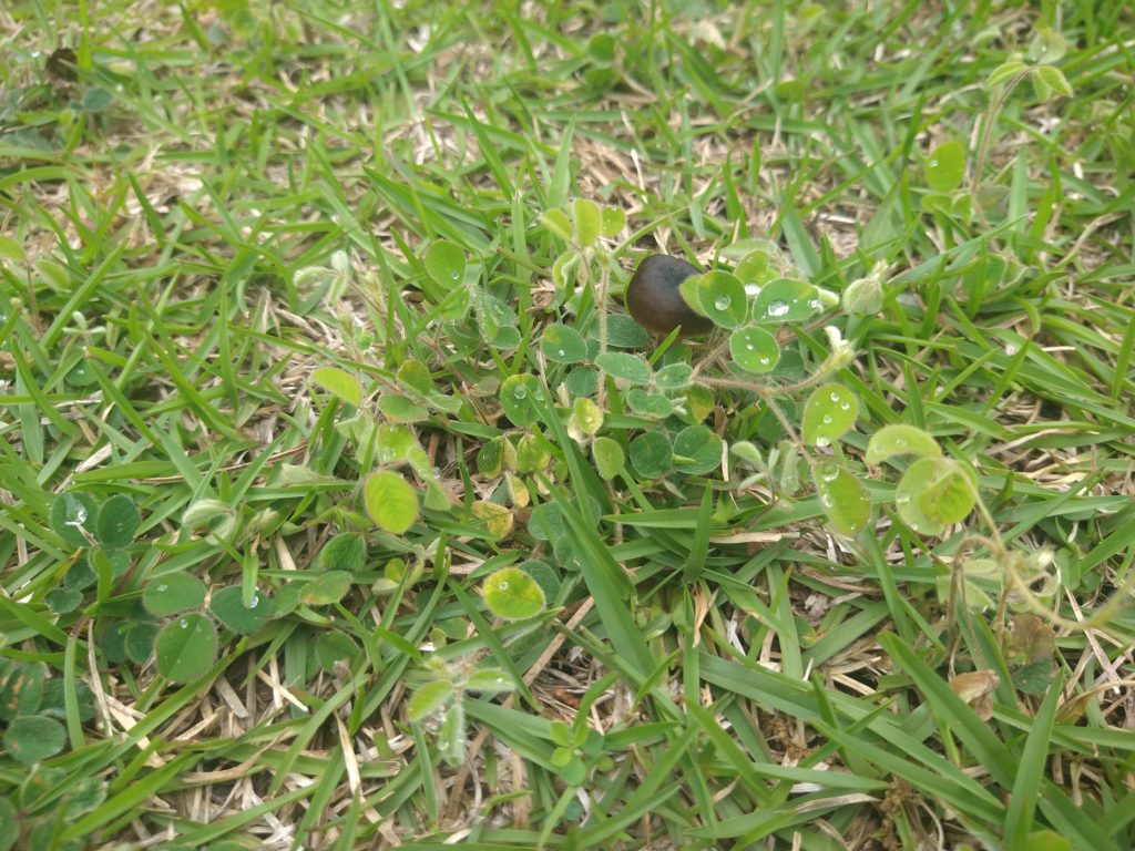 もう一つの問題は雑草です。しっかり芝刈りをしていれば雑草は生えにくいという話もあります。しかし、芝刈りに耐えられる雑草も少なくないのです。自由広場ではネコハギやコメツブツメクサ、スズメノヤリといったところが最近の主な雑草です。初期にあったチガヤやアズマネザサ、メヒシバはほぼ消えました。たぶん芝刈りの効果でしょう。