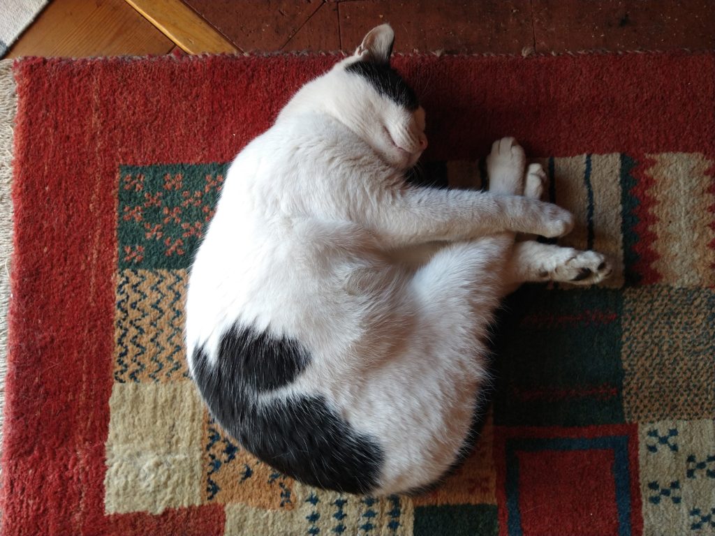 すばるは毎晩夜遊びに出かけます。ネズミ捕りを踏んだせいだと思われる粘着物質を身体につけて帰ってきたことがありましたし、何年も前ですが、自由に外に出してやるようになった初期に首に穴があくケガをしたことがありました。昔私が居候をしていたお宅で飼っていた猫は、夜に出かけると他の猫と喧嘩して帰ってくることがよくありました。郊外の住宅地で、すばると同じく去勢したオス猫でした。当地では周りに住居がないので、すばるはかなり安全に自由に歩き回っているようです。